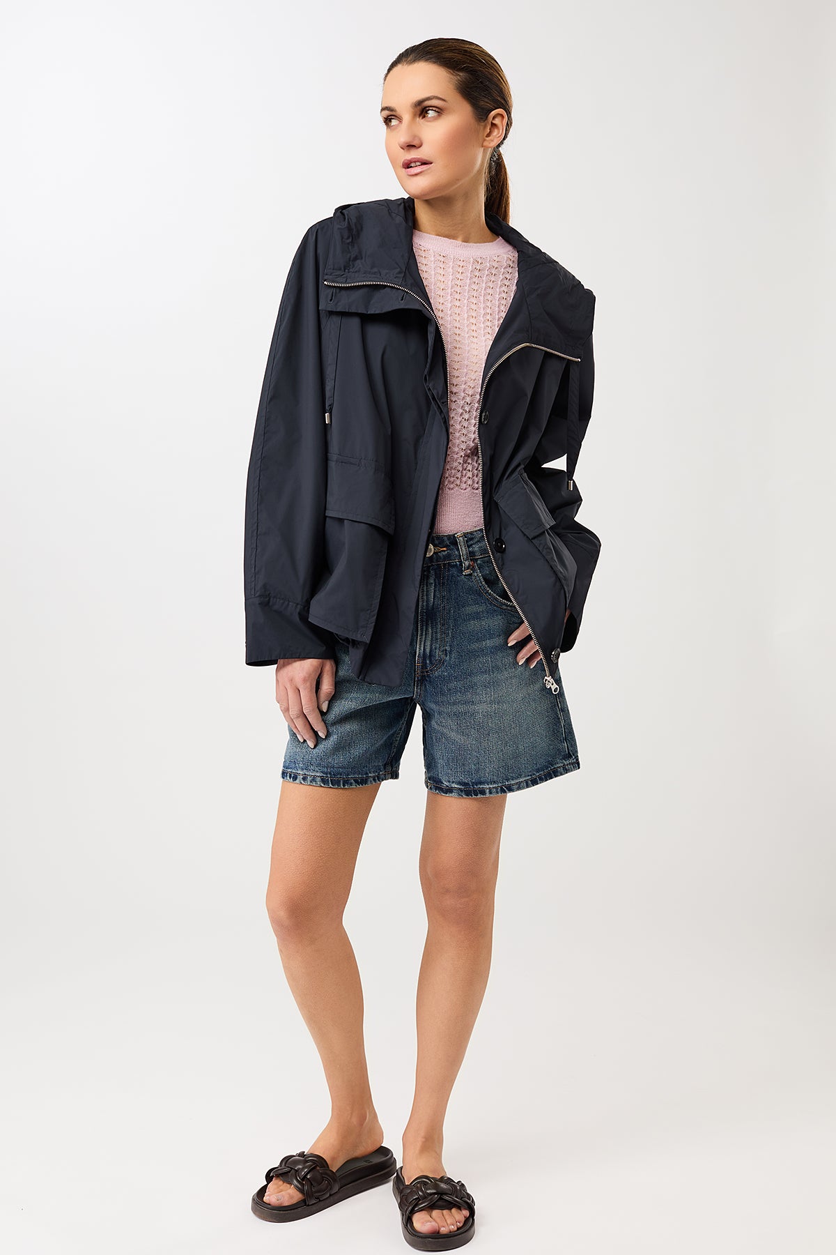 • Saumverarbeitung mit regulierbarem Kordelzug