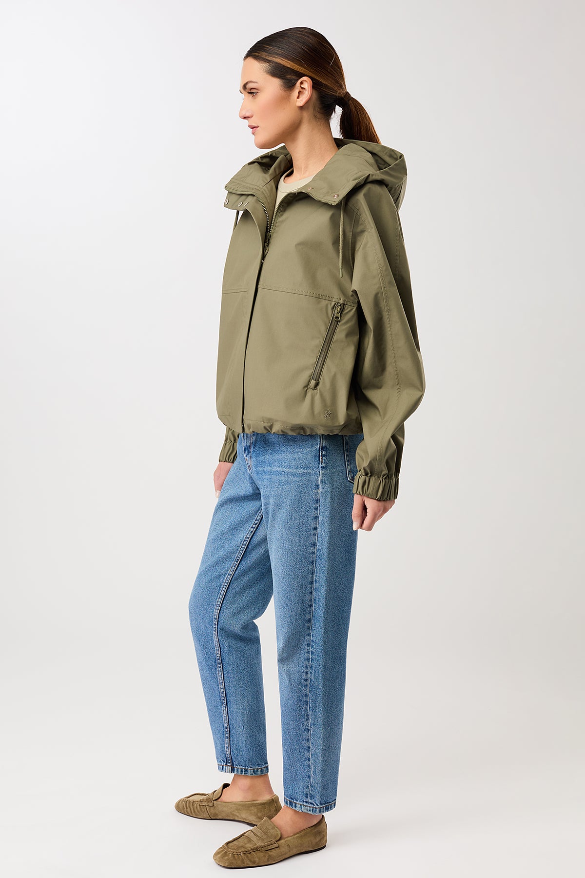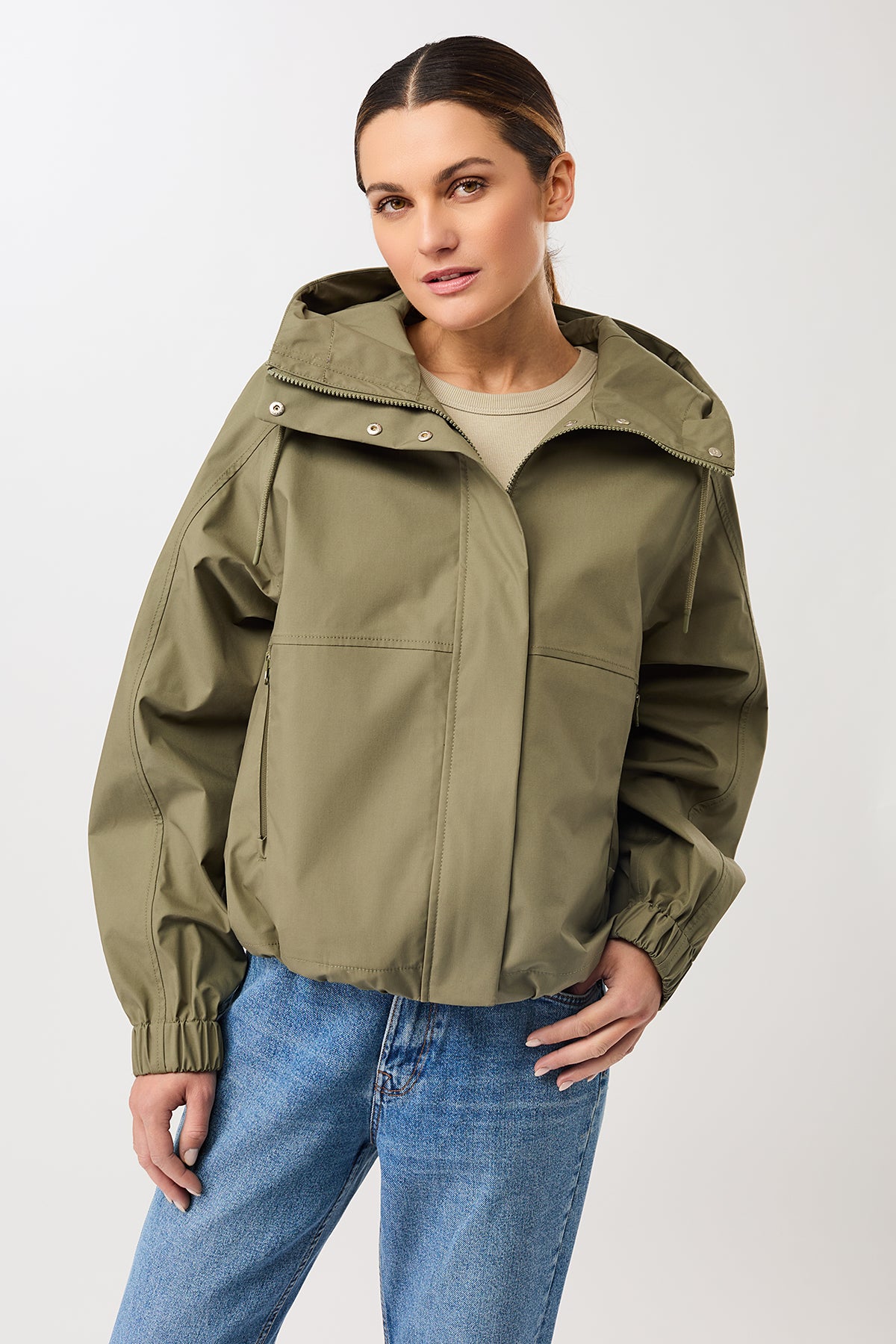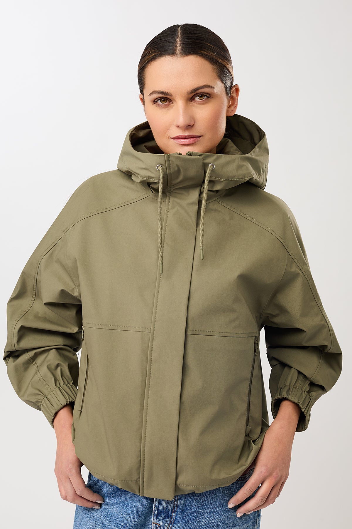 Kurze Regenjacke mit Reissverschlußtasche