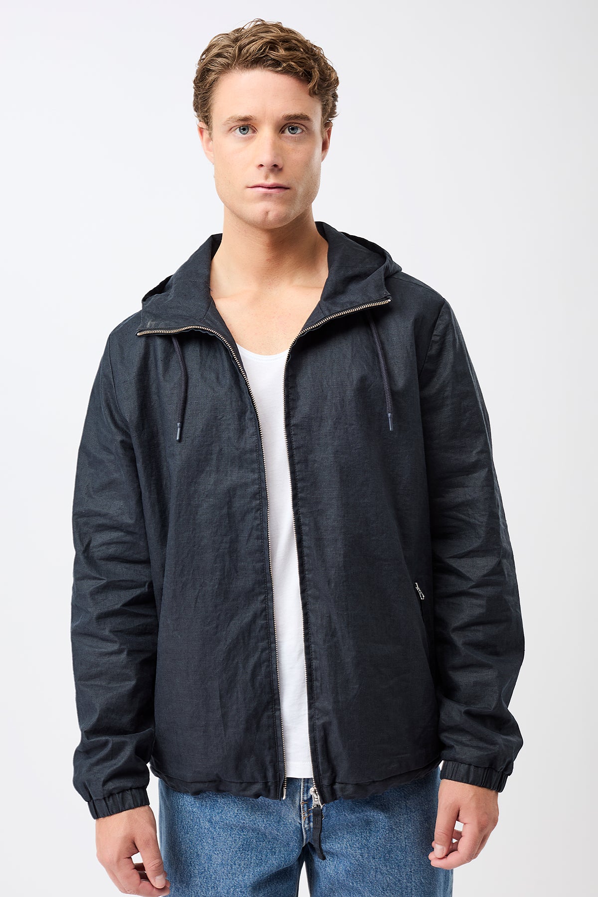 - Rain jacket made from coated organic linen